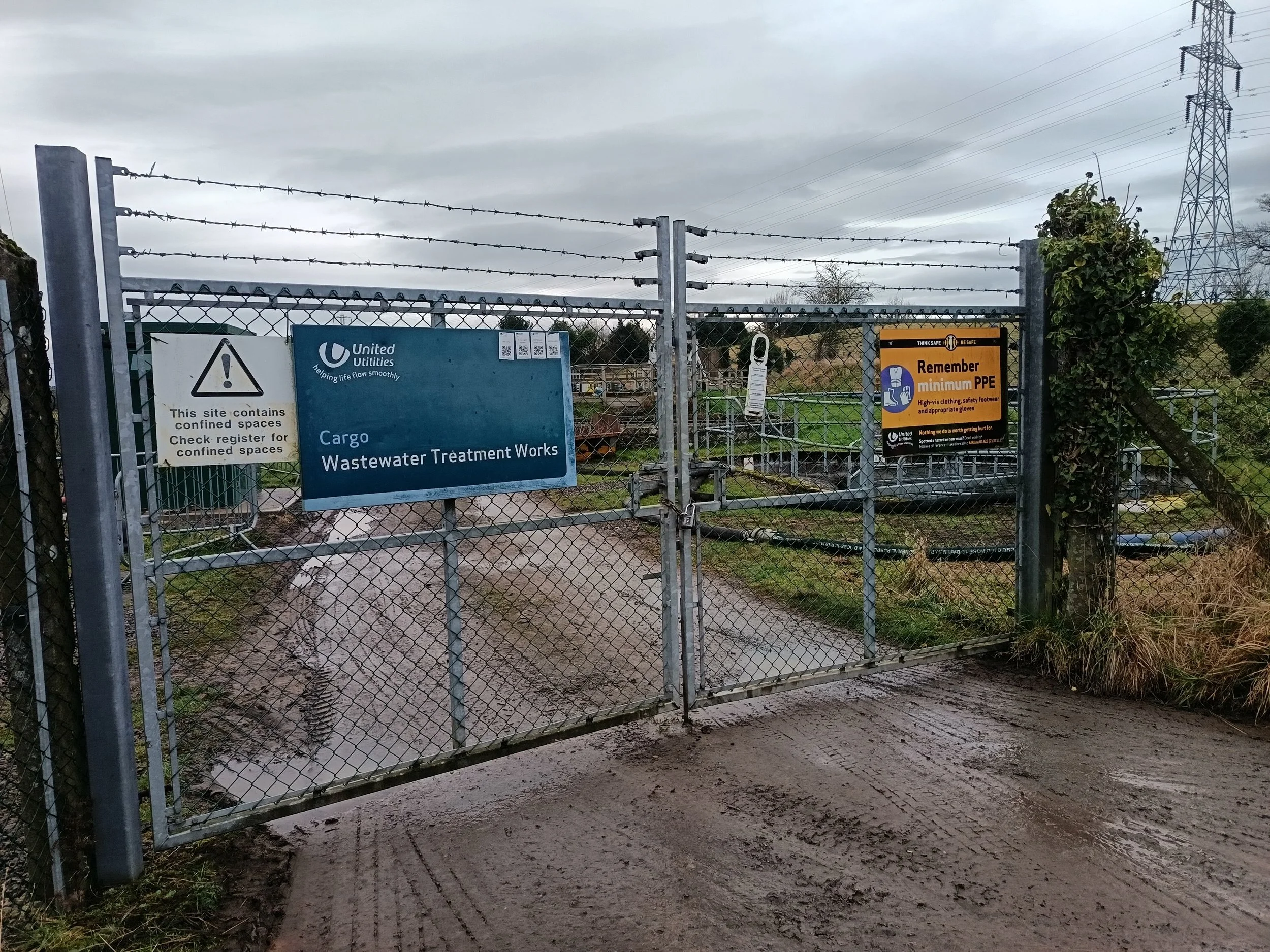 Entrance to United Utilities Cargo Wastewater treatment works.